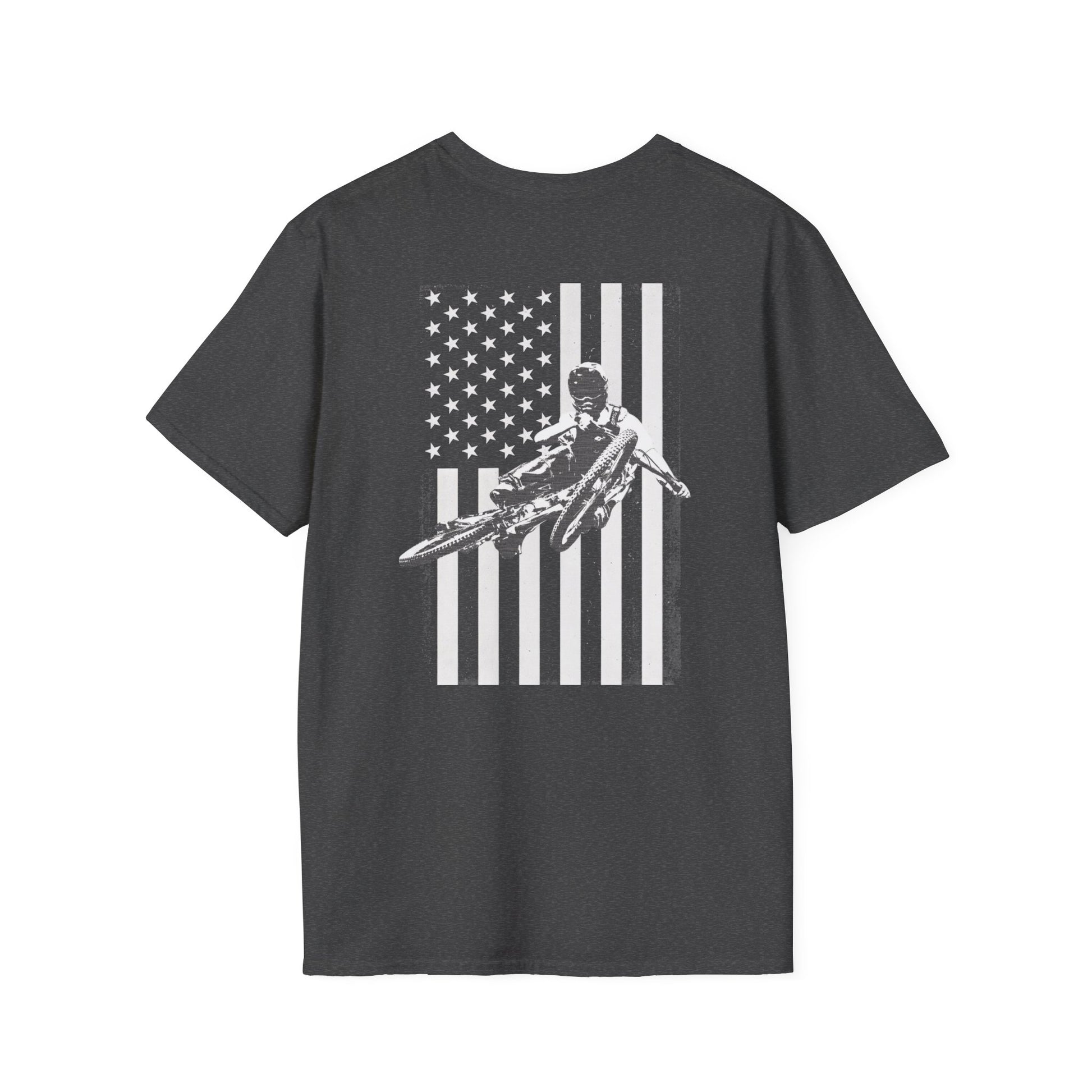 This clean, lightweight tee brings a quiet, rugged energy to your everyday rotation. A small mountain logo sits over the heart for understated terrain pride, while the back shows a high-contrast biker whipping through a flag — an edgy mix of outdoor grit and board culture. The fit is classic and breathable, so it layers easily under a jacket or stands alone on warm days. Wear it at the bonfire after a long ride, or when you want something that reads like lived-in gear with a deliberate, adventurous attitude.